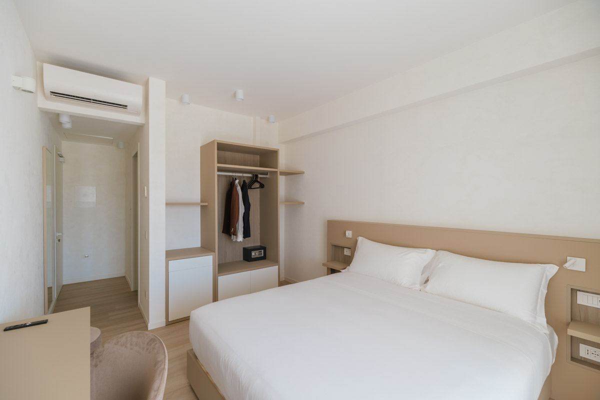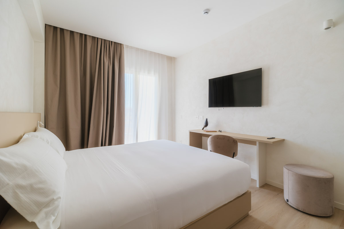 This room type combines comfort and intimacy with the pleasure of a private outdoor space. The Double Room with Balcony is perfect for those who want to relax outdoors after a day at the spa or exploring the Conero. A relaxing atmosphere, refined details, and modern functionality make for an unforgettable stay.
