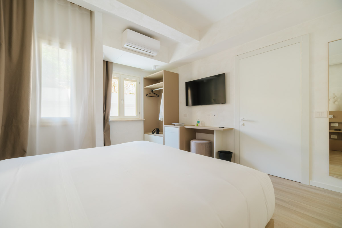 The Standard Double Room is the ideal choice for those seeking a cozy, comfortable space with modern design. Perfect for couples enjoying a relaxing getaway or a romantic escape amidst the beauty of the Riviera del Conero. Natural materials, soothing colors, and functional amenities ensure maximum wellbeing during your spa retreat in Sirolo.
